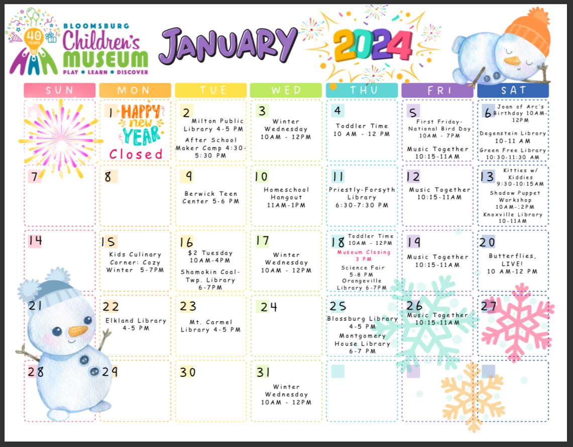 Source : bloomsburgfair.comJanuary Events, Programs, Classes